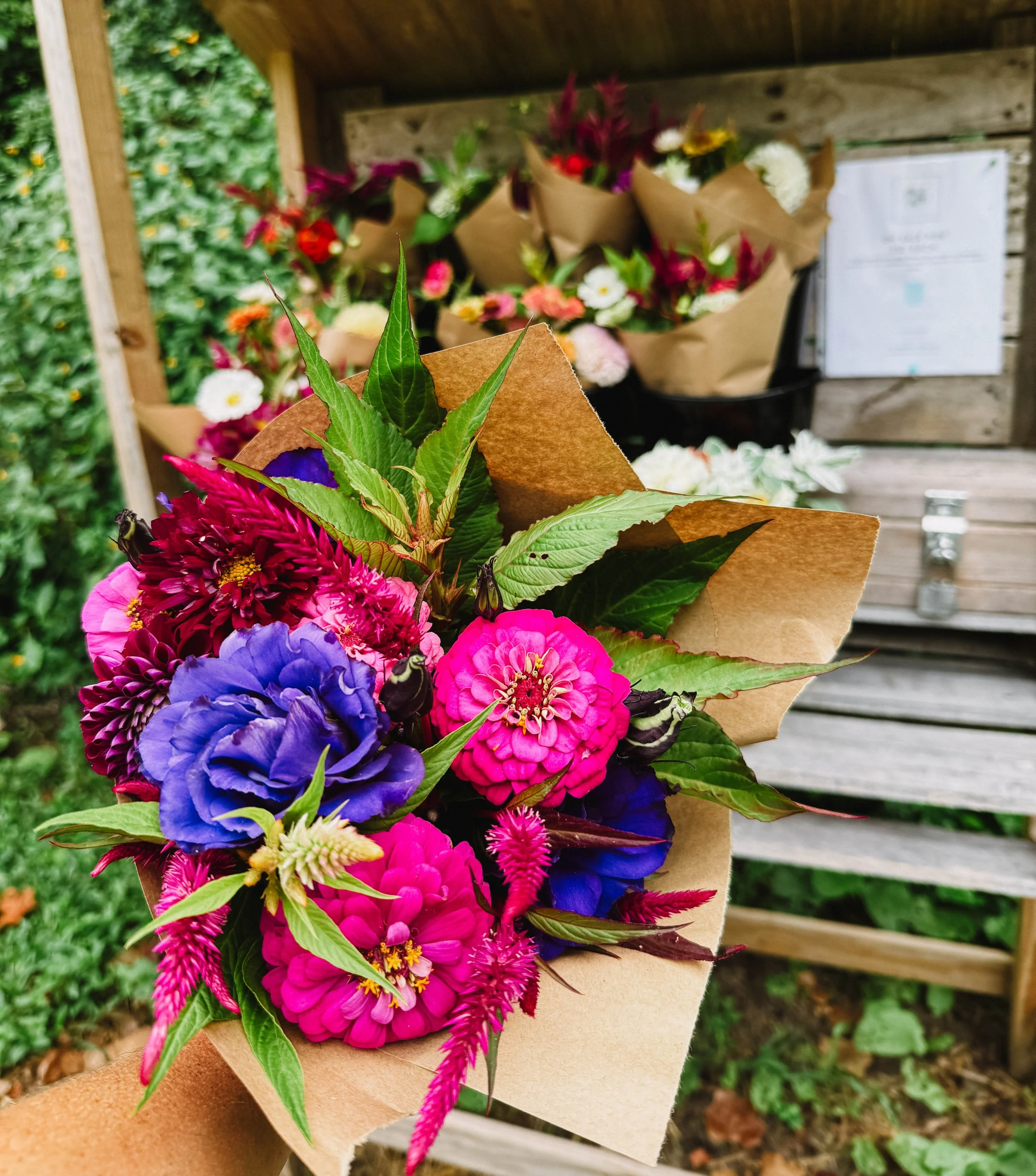 Our roadside stand is open occasionally — a spot to share extra flowers during the week or offer any discounted day-old bouquets.